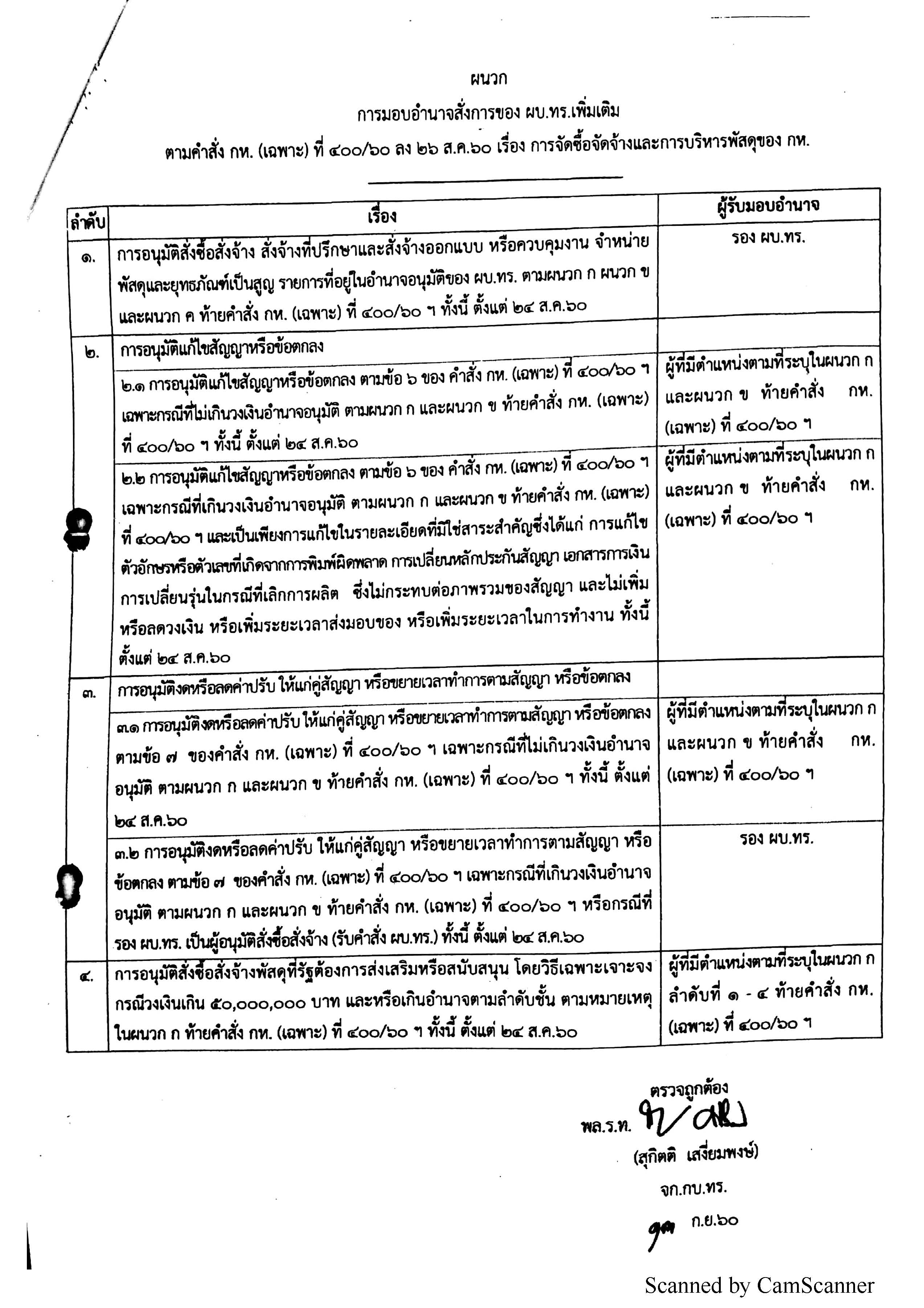 การมอบอำนาจสั่งการของ ผบ.ทร.เพิ่มเติม ตามคำสั่งกหที่ 400/60 ลง๒๖ส.ค.๖๐ เรื่องการจัดซื้อจัดจ้างและการบริหารพัสดุของ กห. (การมอบอำนาจแก้สัญญาใหม่)